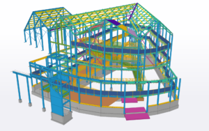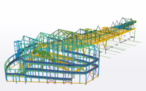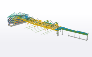 Het blijft niet alleen bij de ontwerpfase want de houten gordingen die gemodelleerd werden met Tekla Structures worden door Jongeneel als een ifc-bestand ingelezen en naar hun CNC machine gestuurd waarbij deze direct geproduceerd kunnen worden. Dit deelproces is dus volledig papierloos gegaan en bespaart weken aan tijd. Ook Buiting machinebouw en staalconstructie gebruikt het model voor het genereren van produktietekeningen en NC-files.